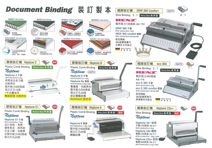 Neptune, RENZ, 鐵圈/膠圈裝訂機